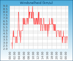 | Maximale windsnelheid | 9.0 km/u om 09:38 u |