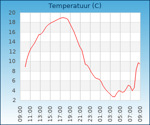| Minimum temp. | -2.2 °C om 01:44 u |