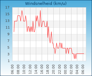 | Maximale windsnelheid | 17.7 km/u om 01:10 u |