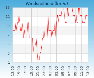 | Maximale windsnelheid | 27.4 km/u om 04:55 u |