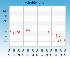 | Windsnelheid en -richting | 14.8 km/u uit WNW |