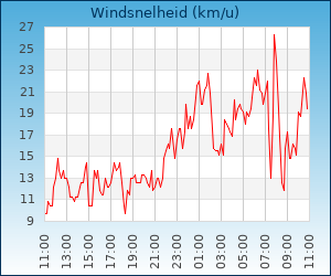 | Maximale windsnelheid | 26.6 km/u om 07:49 u |
