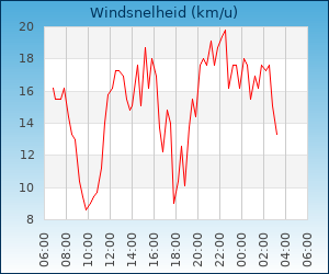 | Windsnelheid en -richting | 13.3 km/u uit WZW |