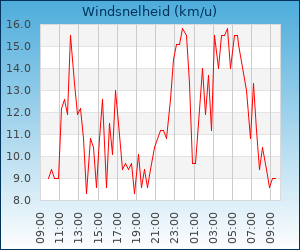 | Windsnelheid en -richting | 11.2 km/u uit OZO |