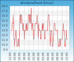 | Windsnelheid en -richting | 13.0 km/u uit OZO |