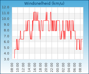 | Maximale windsnelheid | 11.2 km/u om 00:09 u |