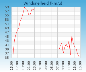 | Windsnelheid en -richting | 41.9 km/u uit NW |