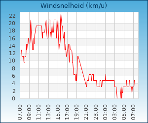 | Maximale windsnelheid | 12.9 km/u om 00:27 u |