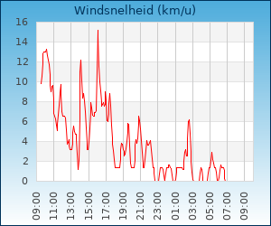 | Maximale windsnelheid | 16.2 km/u om 02:21 u |