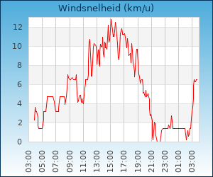 | Maximale windsnelheid | 8.0 km/u om 01:21 u |