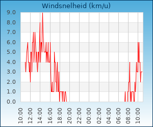 | Maximale windsnelheid | 28.0 km/u om 10:41 u |