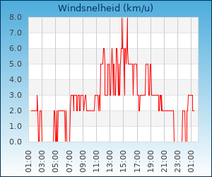 | Maximale windsnelheid | 8.0 km/u om 14:46 u |