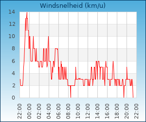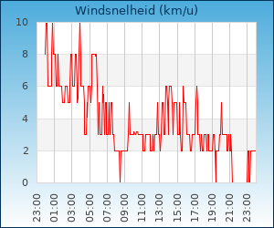 | Maximale windsnelheid | 10.0 km/u om 00:01 u |