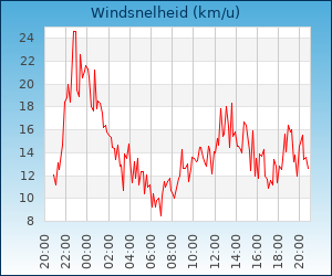 | Maximale windsnelheid | 56.5 km/u om 00:07 u |