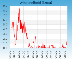 | Maximale windsnelheid | 1.4 km/u om 01:58 u |