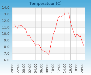 | Maximum temp. | 13.4 °C om 15:13 u |