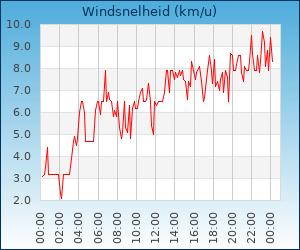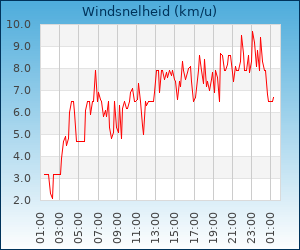 | Maximale windsnelheid | 25.7 km/u om 13:36 u |