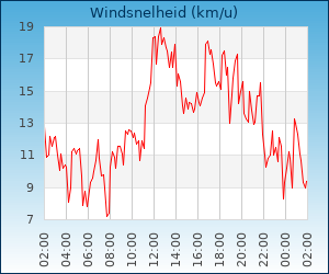 | Maximale windsnelheid | 16.9 km/u om 00:04 u |