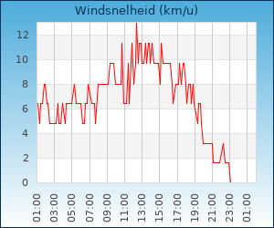 | Maximale windsnelheid | 25.7 km/u om 13:03 u |