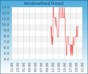 | Maximale windsnelheid | 46.8 km/u om 13:02 u |
