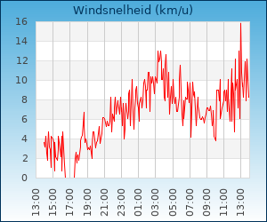| Maximale windsnelheid | 11.2 km/u om 04:55 u |