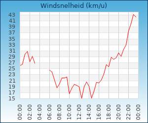 | Windsnelheid en -richting | 33.0 km/u uit O |