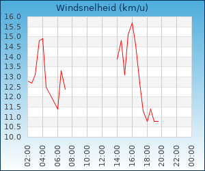 | Windsnelheid en -richting | 10.8 km/u uit ZO |
