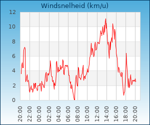 | Windsnelheid en -richting | 5.8 km/u uit ZZW |
