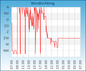 | Windsnelheid en -richting | 0.0 km/u uit ZW |