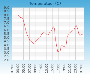 | Maximum temp. | 8.1 °C om 00:00 u |