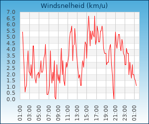 Windsnelheid en -richting | 2.8 km/u uit NNW |