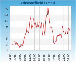 | Maximale windsnelheid | 19.4 km/u om 01:26 u |