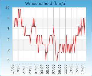 | Maximale windsnelheid | 17.7 km/u om 15:15 u |