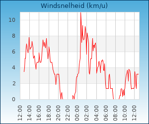 | Maximale windsnelheid | 33.8 km/u om 01:57 u |
