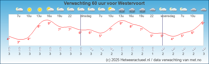 Onderstaande verwachtingen voor Westervoort zijn gemaakt op basis van de XML feeds van Met.no. De ervaring leert dat deze een redelijk betrouwbaar verwachting geven.