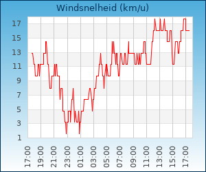 | Maximale windsnelheid | 33.8 km/u om 13:38 u |