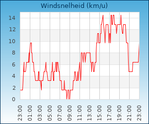 | Maximale windsnelheid | 25.7 km/u om 18:08 u |