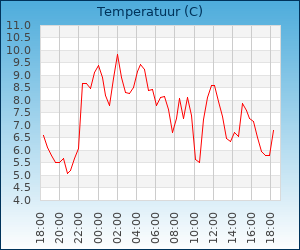 | Maximum temp. | 9.9 °C om 02:04 u |