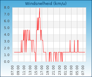 | Maximale windsnelheid | 9.7 km/u om 04:03 u |