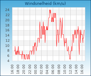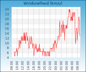 | Maximale windsnelheid | 54.7 km/u om 04:45 u |