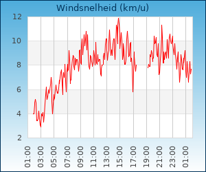 | Maximale windsnelheid | 27.4 km/u om 00:16 u |