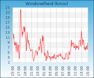 | Maximale windsnelheid | 25.7 km/u om 12:54 u |