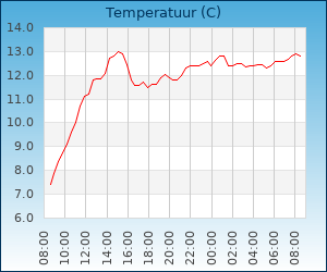 | Maximum temp. | 12.8 °C om 00:57 u |