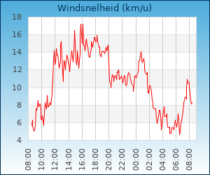 | Maximale windsnelheid | 27.8 km/u om 00:14 u |