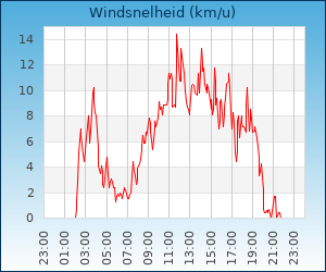 | Maximale windsnelheid | 35.4 km/u om 01:10 u |