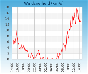 | Windsnelheid en -richting | 13.1 km/u uit WZW |