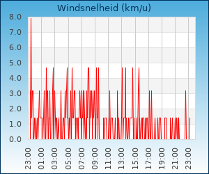 | Maximale windsnelheid | 4.7 km/u om 01:41 u |