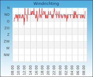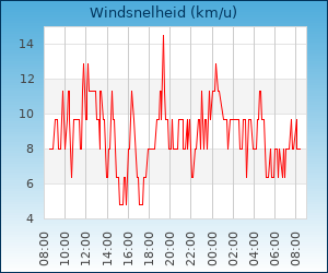 | Windsnelheid en -richting | 8.0 km/u uit NO |