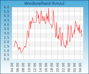 | Windsnelheid en -richting | 1.8 km/u uit ZW |