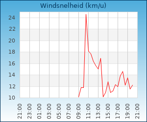 | Windsnelheid en -richting | 16.9 km/u uit ZW |